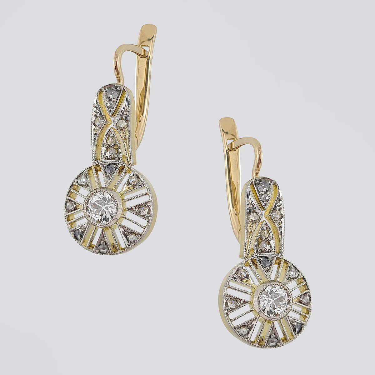 Антикварные золотые серьги 56 пробы с бриллиантами старой огранки и алмазами