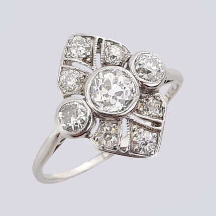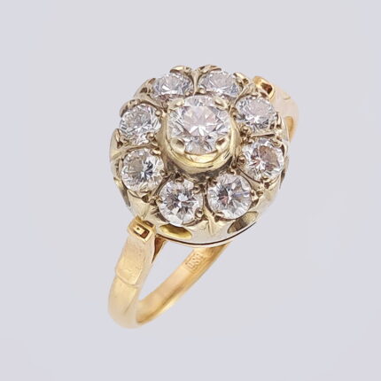 Антикварное русское золотое кольцо с бриллиантами старой огранки и алмазами огранки роза