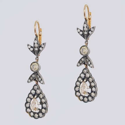 Кольцо золотое 56 пробы с бриллиантами старой огранки и обсидианом
