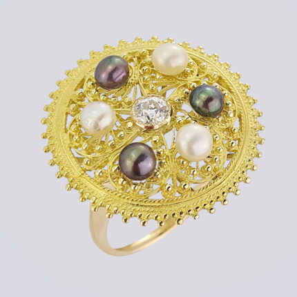 Золотое кольцо 750 пробы профиль девушки камея на раковине
