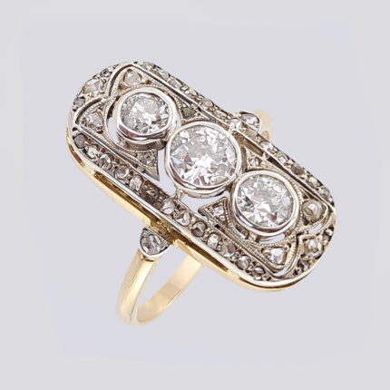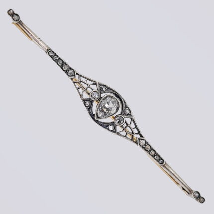 Антикварная золотая подвеска «Цветок» 56 пробы с бриллиантами старой огранки и алмазами