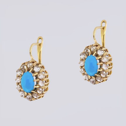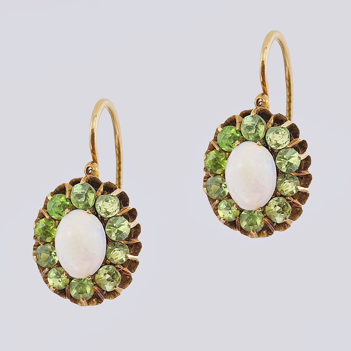 Серьги малины золотые 56 пробы с опалами, демантоидами и хризолитами