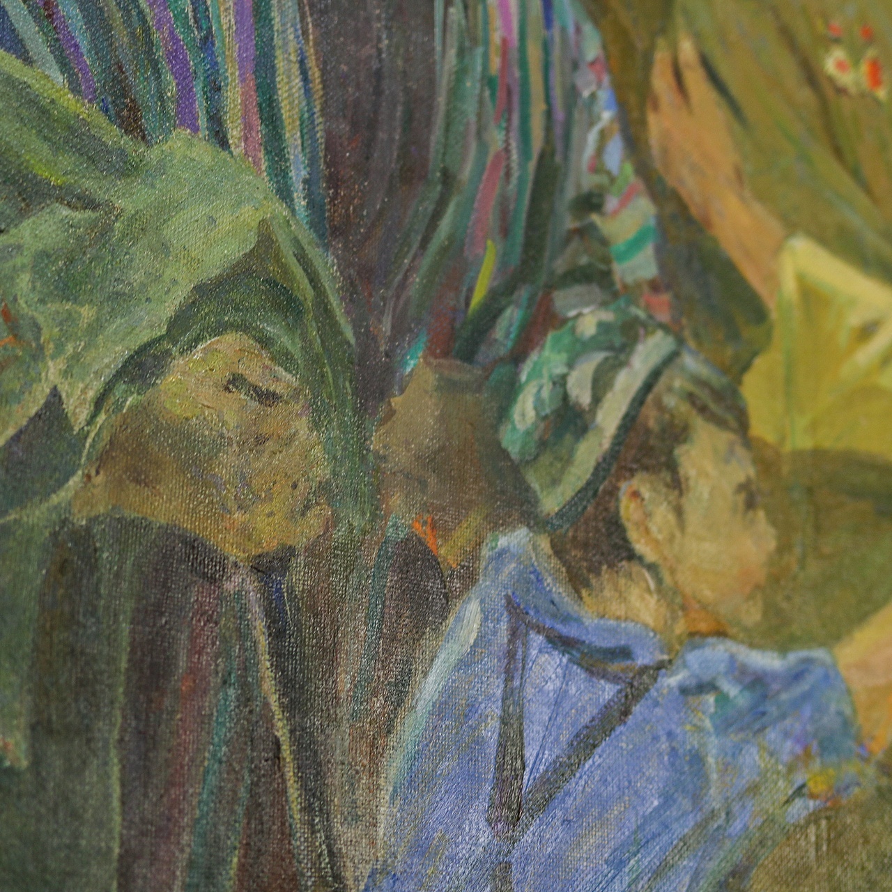 В наличии старинная картина «Мать с офицером». Художник Саидов Маннон Абдусамадович (1923 – 2001), заслуженный деятель искусств Узбекистана с 1968 года. Почтенный член Академии Художеств Узбекистана, профессор. Член Союза художников СССР. Родился в Ташкенте в 1923 году. В 1947 году окончил Ташкентское художественное училище имени П.П. Бенькова, в 1947-1953 годах учился в Ленинградском институте живописи, скульптуры и архитектуры им. И. Репина в мастерской Б. Иогансона. С 1956 года — преподаватель Ташкентского педагогического института; с 1960 года работал преподавателем, доцентом (1968), профессором (1985) в Ташкентском театрально-художественном институте и Национальном институте художеств и дизайна им. К. Бехзода. В 1999 году бы избран Почётным членом АХУз. Произведения автора участвовали в различных выставках в Узбекистане и за его пределами. Таких как: выставка произведений художников Узбекистана (1954), выставка произведений художников Узбекистана, посвященная 40-летию великой октябрьской социалистической революции (1957), с 1959 года в выставках Дирекции художественных выставок Академии художеств Узбекистана проходящих в ЦВЗ. Картины Саидова находятся в Художественном фонде Узбекистана, музейных и частных собраниях в России и за рубежом.