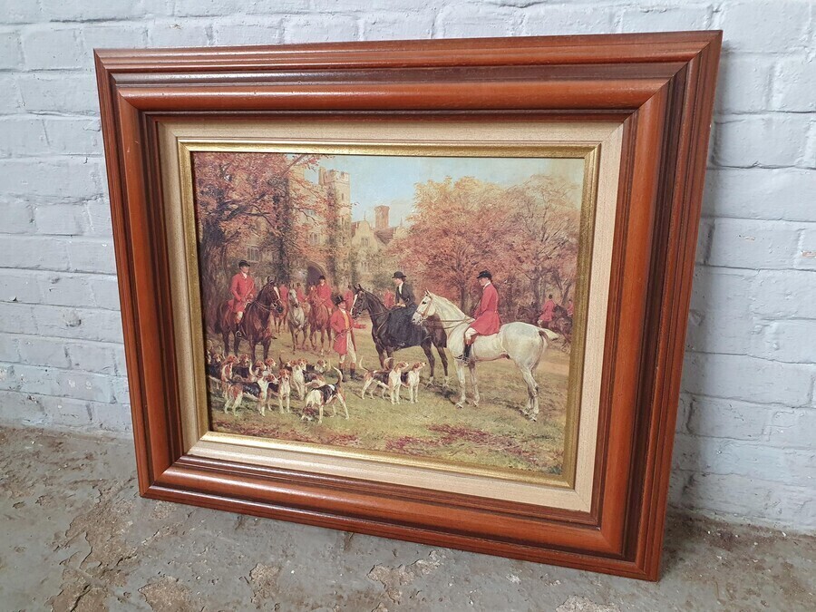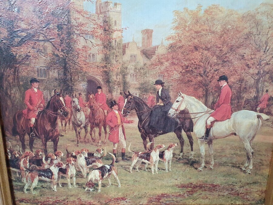 Старинная картина «Охотники на лис», копия работы английского художника Хейвуда Харди (25 ноября 1842 – 20 января 1933), середина 20 века, Бельгия. Картина написана маслом на холсте.