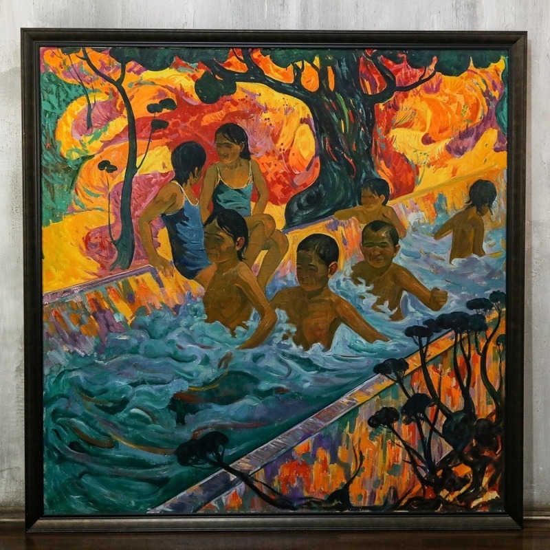 В наличии старинная картина «В степь пришла жизнь», 1983 год, художник Тешабой Пирматов (1936 – 2008). Тешабой Пирматов родился в 1936 году в Ташкентской области. Произведения художника находятся в музейных и частных собраниях в Узбекистане, России и за рубежом. Центр картины, соединяющий всю композицию – вода, она и есть жизнь – звонкий детский смех, плеск прозрачного потока и гротескно-яркий пейзаж, выполненный в постимпрессионистской манере, символизируют новую жизнь в степи, некогда сухой, бледной и необитаемой. Картина написана маслом на холсте и оформлена в багет.